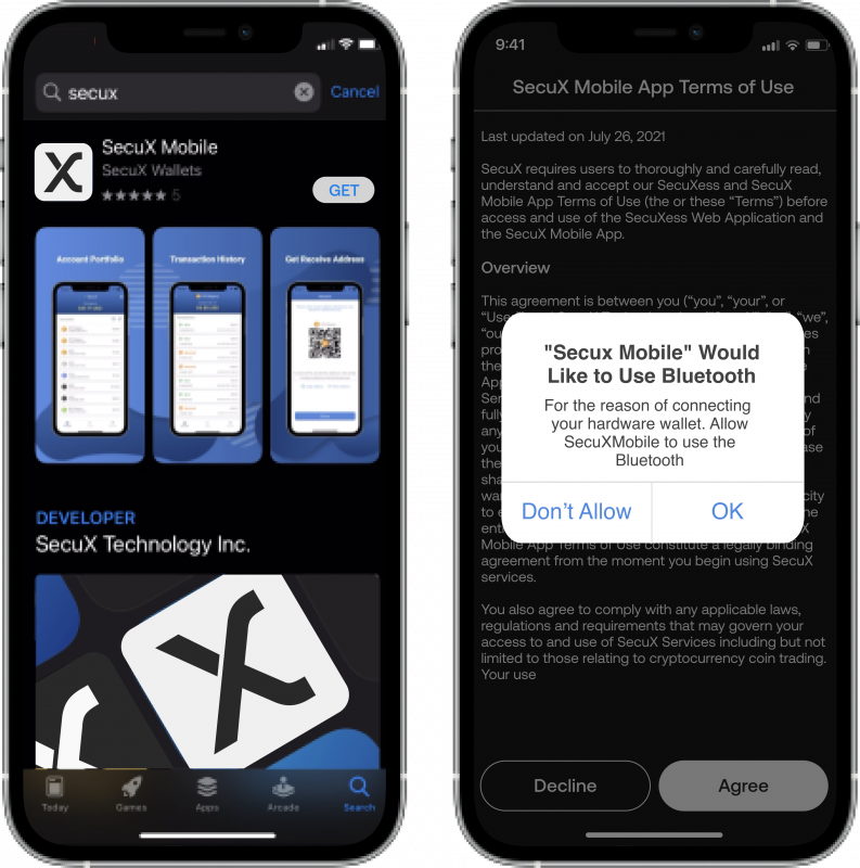 1.Vá para a App Store e baixe o aplicativo SecuX Mobile.