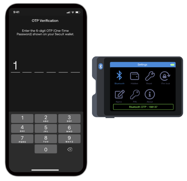 2.Digite a senha (OTP) no SecuX Mobile App conforme as instruções.