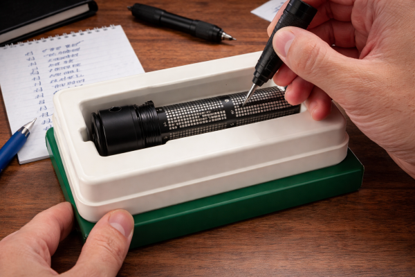 A caneta de pré-marcação (para testar/confirmar antes de perfurar)